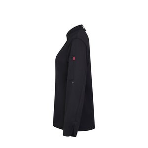 Women's kitchen jacket (190 g/m²) made of cotton (35%) and recycled polyester (65%). With a feminine comfort design, liquid-repellent fabric and breathable COOLMAX fabric back. The jacket has a central zip with concealed buttons. Size: XS, S, M, L, XL, 2XL